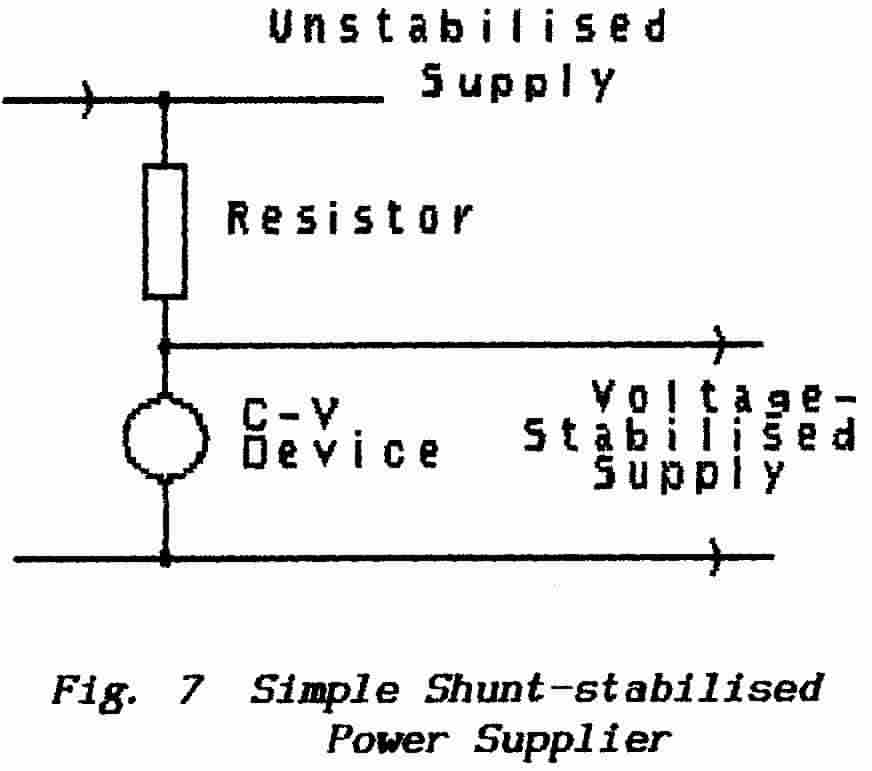 ** The action of this circuit arrangement, in which the stabiliser shunts current away from the load, has given it the name shunt-stabiliser.