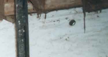 Ventilation HolesThese holes go right through the stable walls to let fresh air flow through the stable. They are up high so that the air can flow without making a draught on the floor which would be uncomfortable for the animals. The small birds love the holes. They use them as a shortcut to get past the stables - they fly straight through just folding up their wings for a moment and often nearly crash into us as they go by !. |