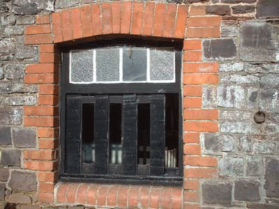 WINDOWSOur windows have glass at the top to let in the light. Below that is a sliding ventilator that can be closed to make it cool and dark inside the stable.That gives the donkeys somewhere to hide from the biting flies that come out at dusk. It can be used to shut out stormy weather too. You can also see one of our tying-up rings. |
